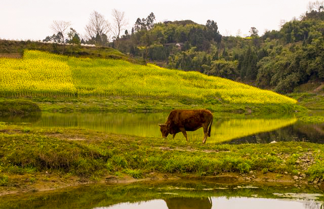 河水田间的一园树
