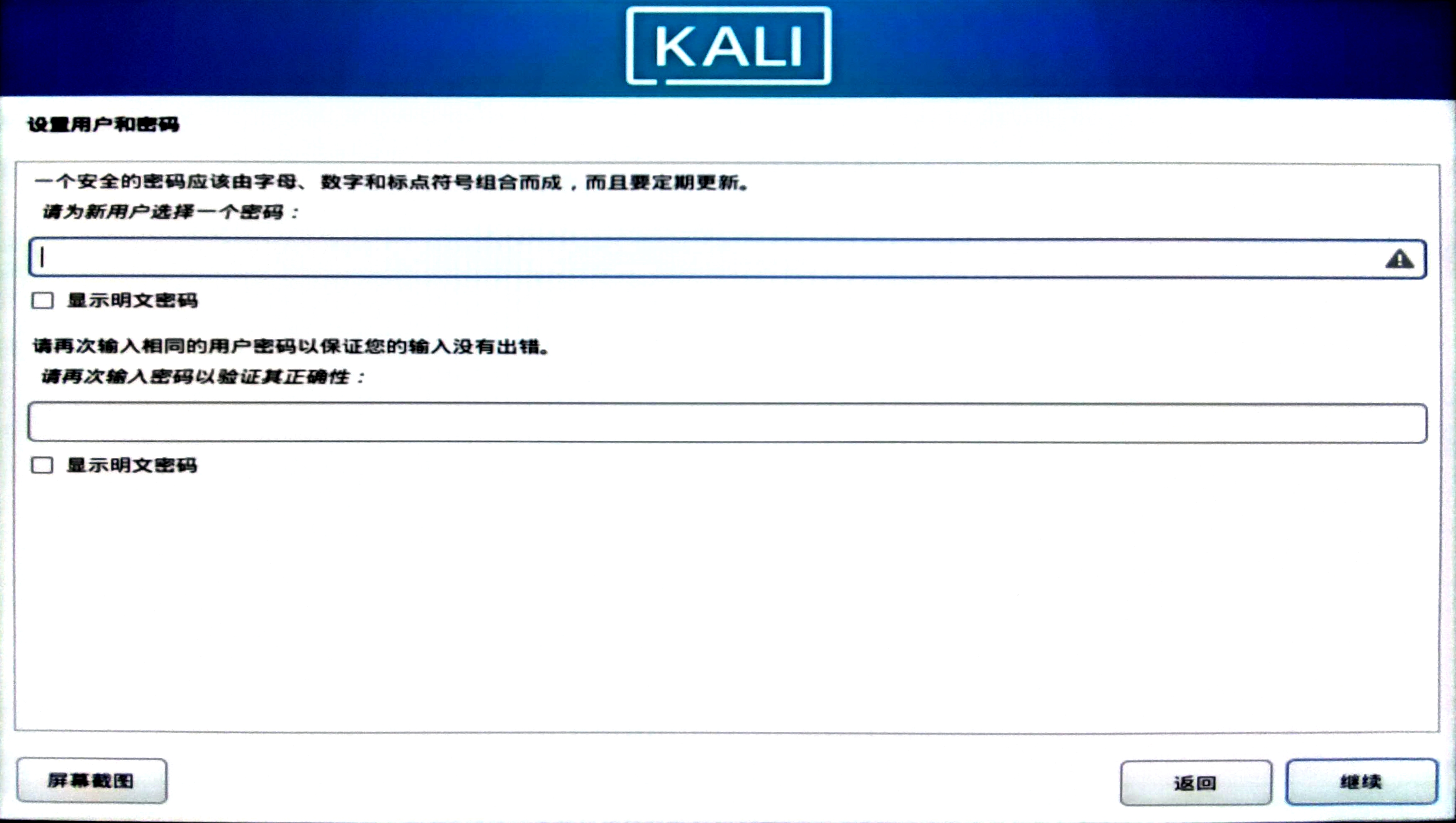11.设置用户密码,这里设置了要记住密码,后面登录要用到,设置好以后按ENTER键进入下一步。