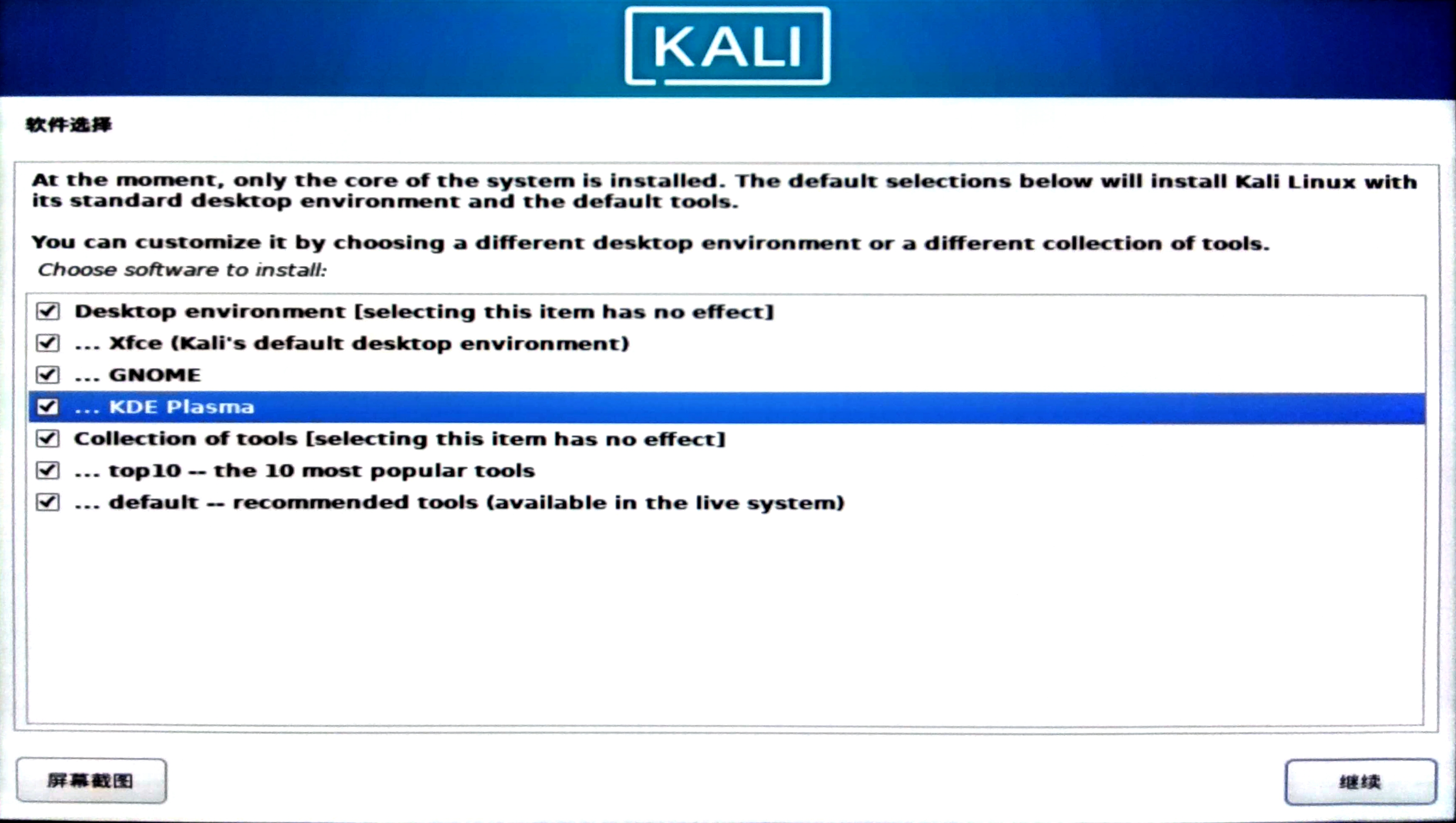 17.基本系统安装进度走完以后,进入选择安装软件包,这里要全部选择,我这里被坑了很多次,如果按默认的安装好以后没有蓝牙驱动,所以这里要全选。选好以后按ENTER键进入下一步。等待安装进度条,我这里共有3140个文件需要安装,耐心等待就行。