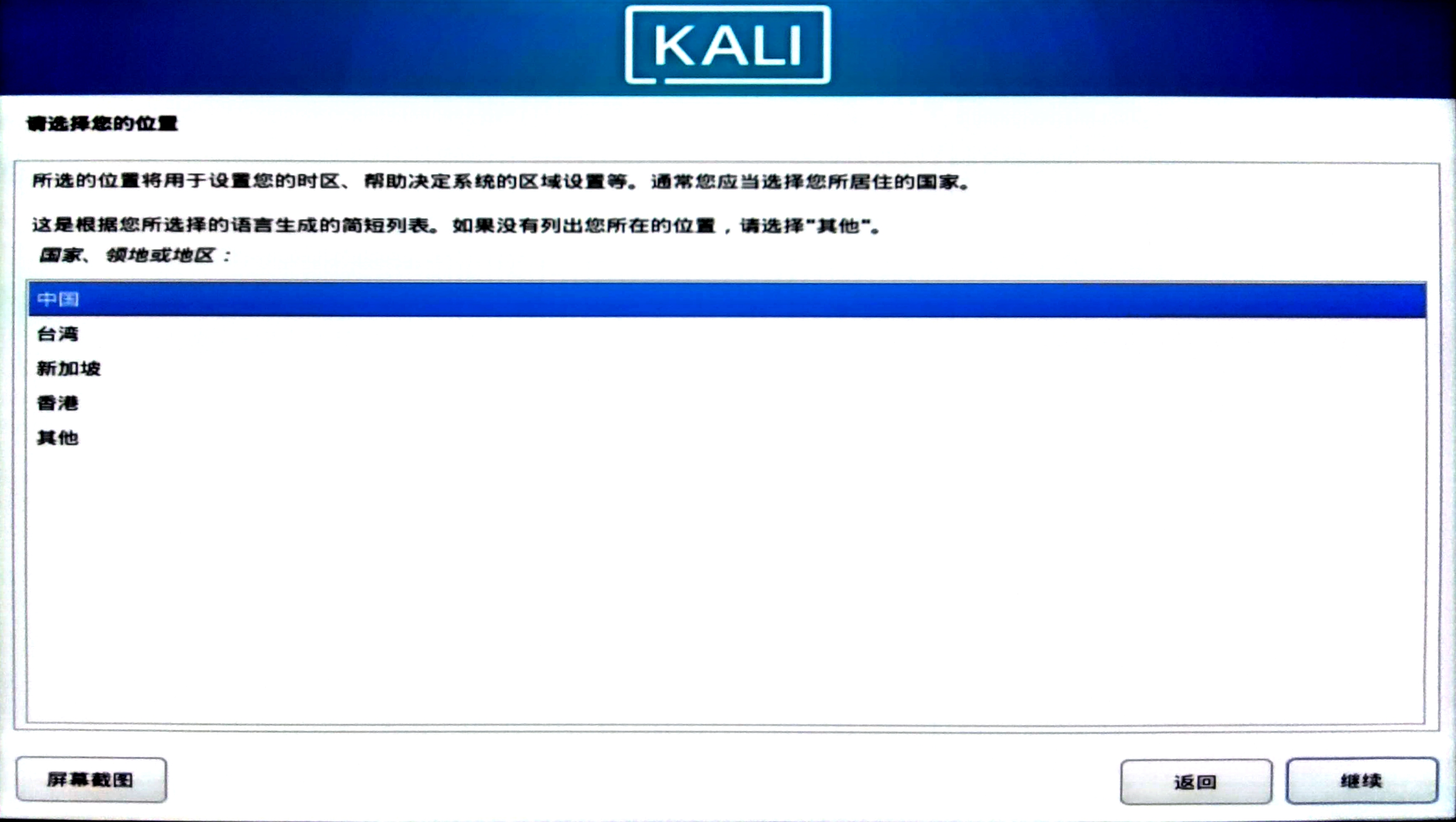 4.选择地区,选择中国,按ENTER键进入下一步。