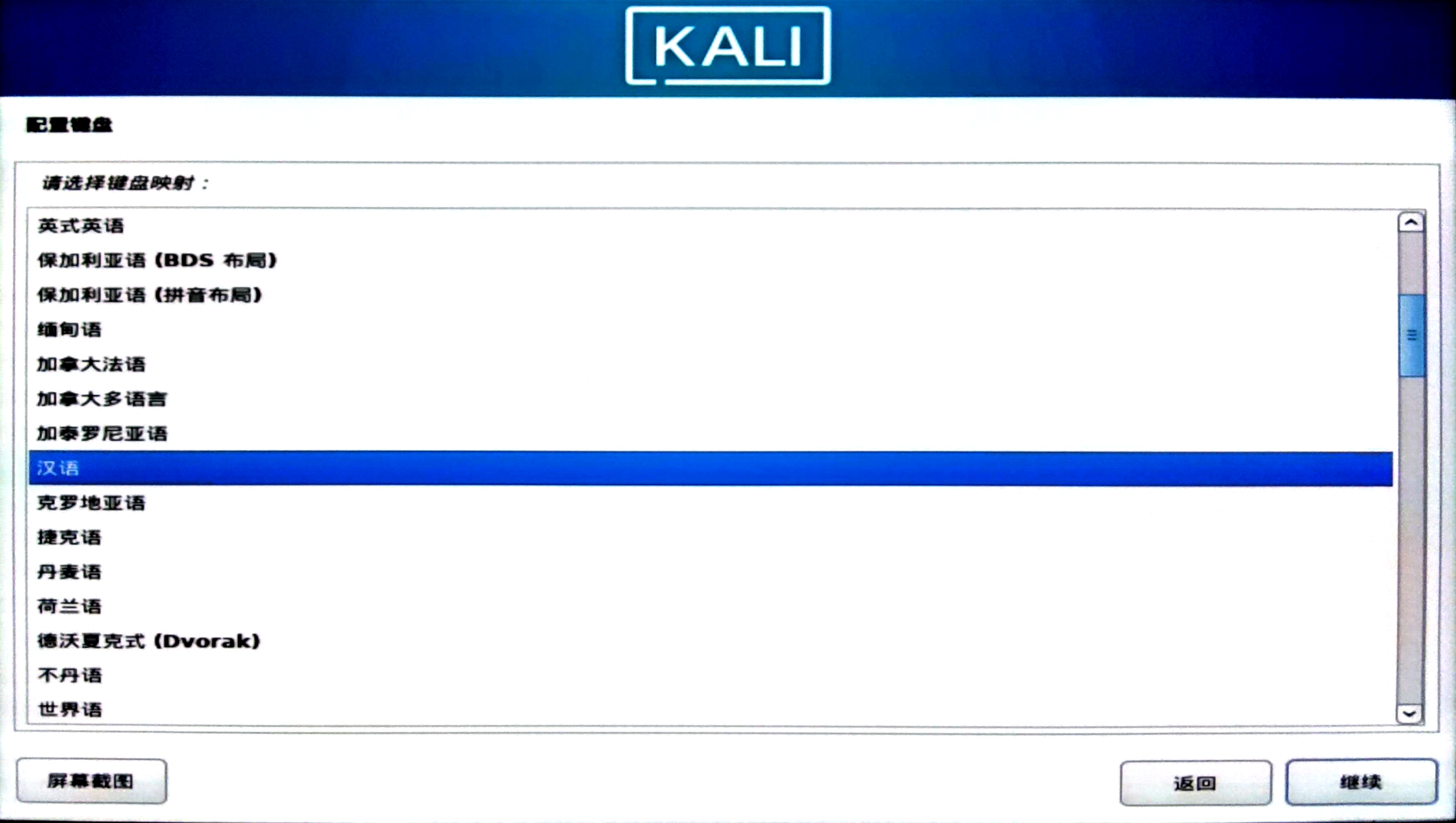 5.选择键盘,选择汉语,按ENTER键进入下一步。