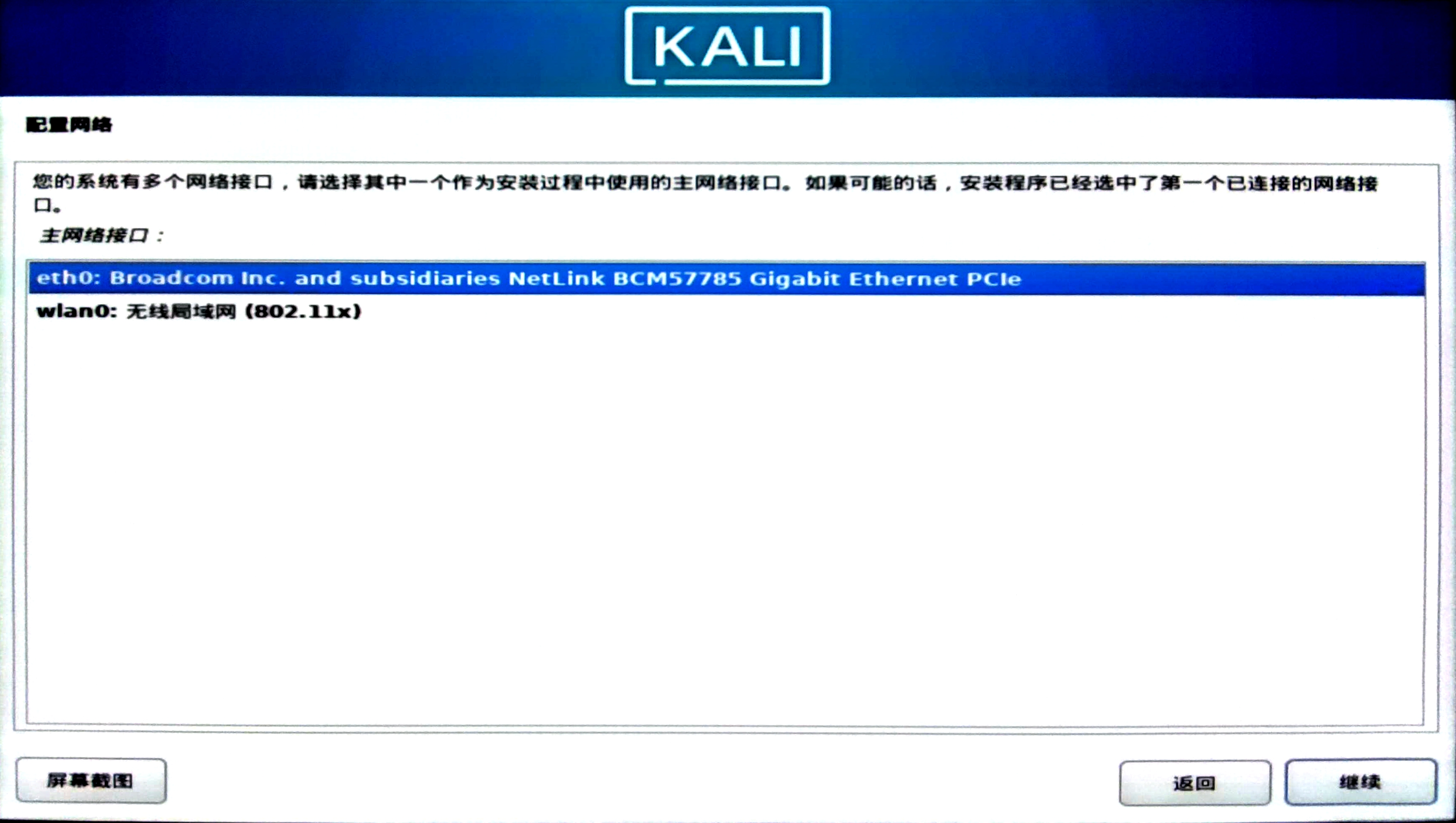 6.配置网络,我这里选择有线网,按ENTER键进入下一步。